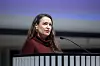 Kunnallisalan kehittämissäätiön toimitusjohtaja Jenni Airaksinen piti esitelmän siitä, millaisia haasteita kunnanjohtaja kohtaa työssään nykypäivänä.